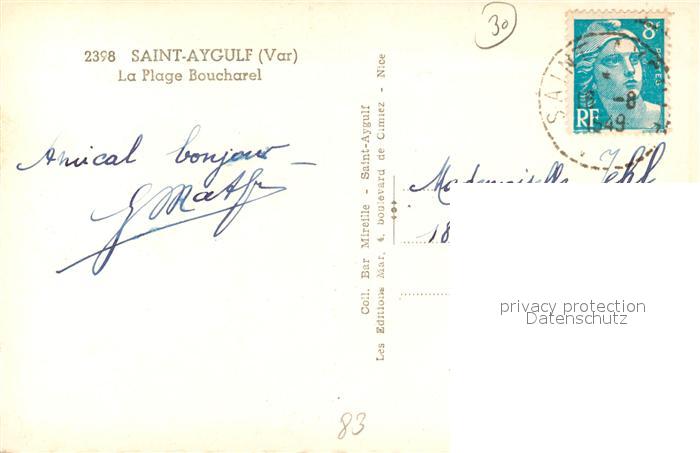 13484656 carte postale Saint-Aygulf Var Plage Boucharel Cote d Azur postalisch gelaufen Erhaltung siehe scans [FriedD77] KatCode: 11170083183061