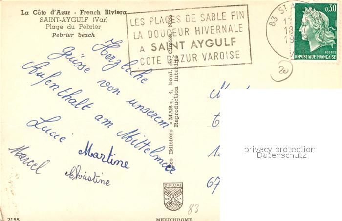13484655 carte postale Saint-Aygulf Var Plage du Pebrier Cote d Azur postalisch gelaufen Erhaltung siehe scans [FriedD77] KatCode: 11170083183061