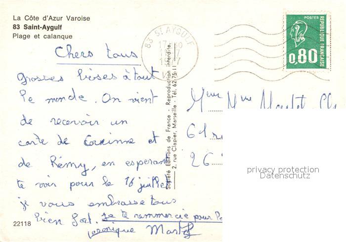 13545801 carte postale Saint-Aygulf Var Plage et calanque postalisch gelaufen Erhaltung siehe scans [WerneD78] KatCode: 11170083183061