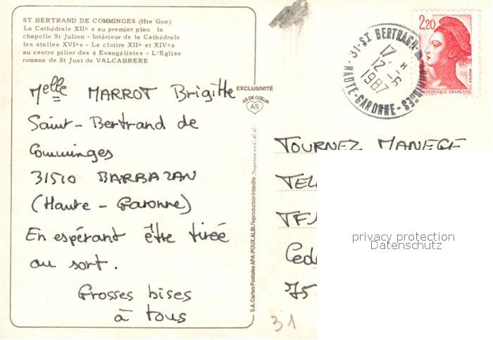 13223344 carte postale Saint-Bertrand-de-Comminges Kathedrale XII Kapelle Sankt Julien postalisch gelaufen Erhaltung siehe scans [KathaD81] KatCode: 11170031231472