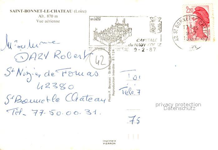 13161939 carte postale Saint-Bonnet-le-Chateau Fliegeraufnahme postalisch gelaufen Erhaltung siehe scans [KathaD81] KatCode: 11170042142204