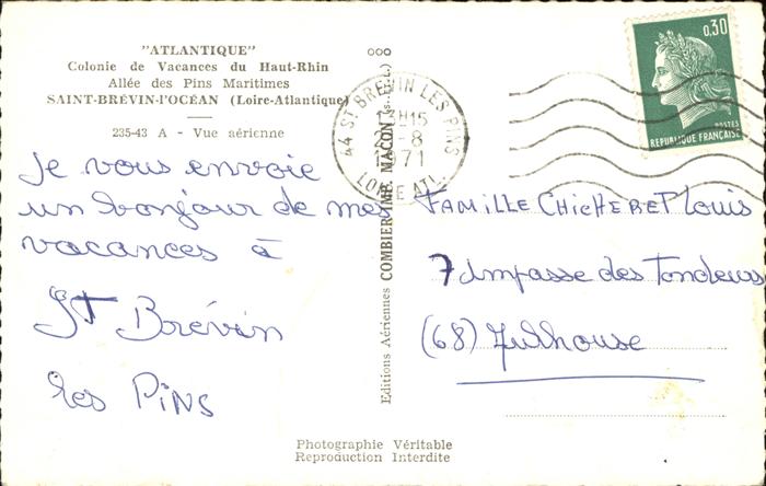 11185031 Saint-Brevin-l Ocean Loire Atlantique Colonie des Vacances du Haut-Rhin KatCode 11170044344154