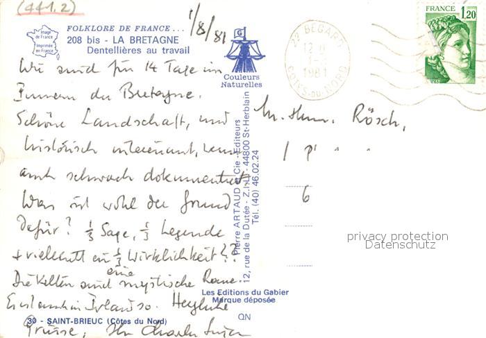 13592523 Saint-Brieuc Cotes-d Armor Dentellieres au travail postalisch gelaufen Erhaltung siehe scans [LiesaD40] carte postale Lies Katcode 11170022422278