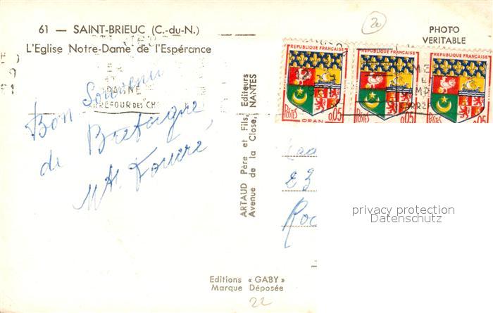 13501184 carte postale Saint-Brieuc Cotes-d Armor Eglise Notre Dame de l Esperance postalisch gelaufen Erhaltung siehe scans [KathaD81] KatCode: 11170022422278