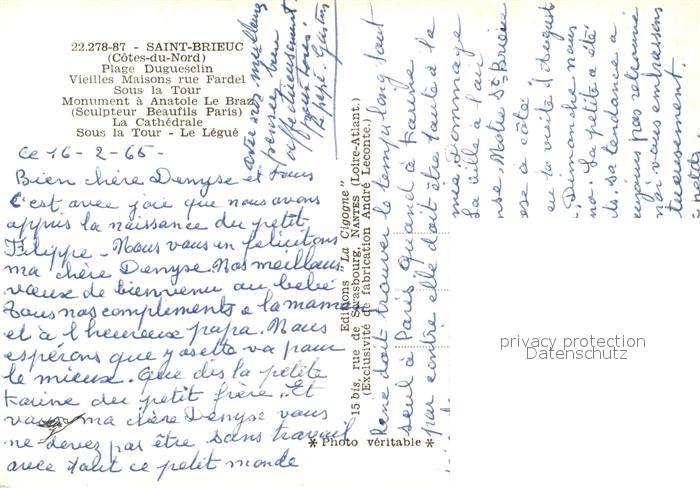 13266601 Saint-Brieuc Cotes-d Armor Plage Dugueselin Vieilles Maisons rue Fardel Sous la Tour Monument La Cathedrale sous la Tour Le Legue postalisch nicht gelaufen Erhaltung siehe scans [WerneD78] KatCode: 11170022422278