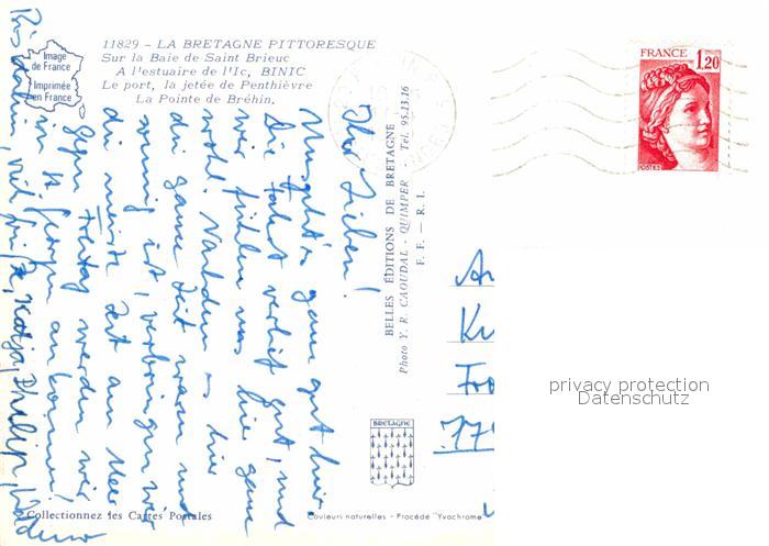 12677548 carte postale Saint-Brieuc Cotes-d Armor Vue aerienne Binic Port Jetee de Penthievre Pointe de Brehin postalisch gelaufen Erhaltung siehe scans [FriedD77] KatCode: 11170022422278