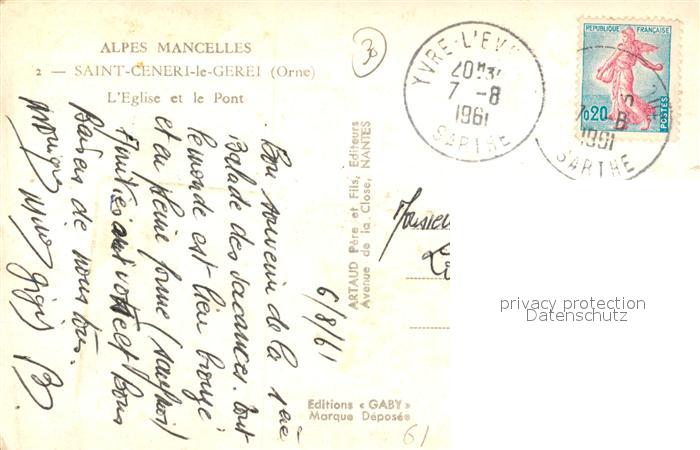 13524740 carte postale Saint-Ceneri-le-Gerei Eglise et le Pont postalisch gelaufen Erhaltung siehe scans [FriedD77] KatCode: 11170061161372