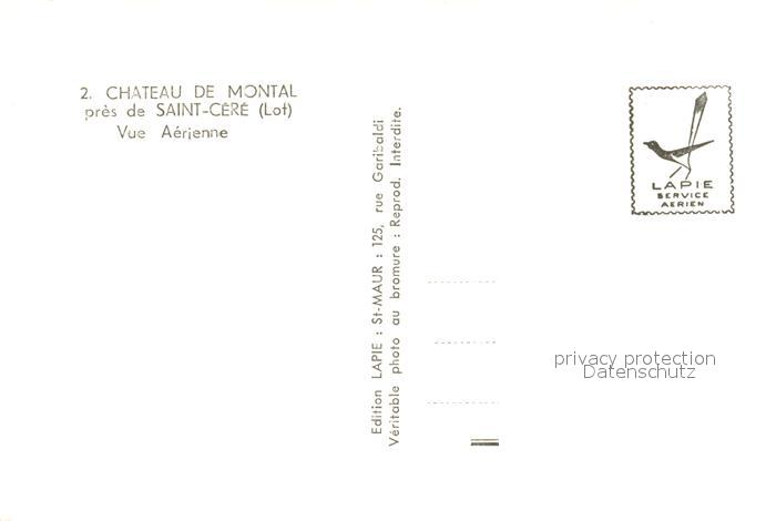 13547049 Saint-Cere Chateau de Montal vue aérienne postalisch nicht gelaufen Erhaltung siehe scans [FriedD77] KatCode: 11170046246251