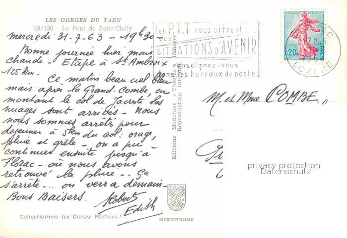 12813991 carte postale Saint-Chely-d Apcher Pont Les Gorges du Tarn postalisch gelaufen Erhaltung siehe scans [LiesaD40] KatCode: 11170048248140