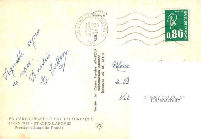 13223332 carte postale Saint-Cirq-Lapopie Altstadt postalisch gelaufen Erhaltung siehe scans [KathaD81] KatCode: 11170046146256