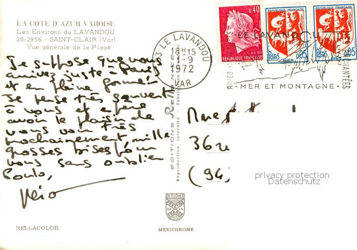 13800271 Saint-Clair Le Lavandou 83 Var Vue generale de la Plage postalisch gelaufen Erhaltung siehe scans [WerneD78] carte postale Wern Katcode 11170083283070