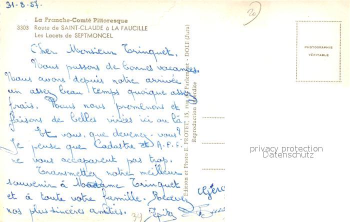 13504012 Saint-Claude Jura Route a La Faucille les lacets de Septmoncel postalisch nicht gelaufen Erhaltung siehe scans [FriedD77] KatCode: 11170039339478