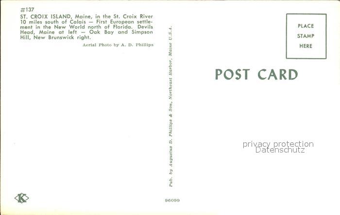 72482903 Saint Croix Island in the Saint Croix River aerial view postalisch nicht gelaufen Erhaltung siehe scans KatCode: 14140210000000