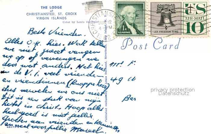 72846287 old postcard Saint Croix Virgin Islands Lodge postalisch gelaufen Erhaltung siehe scans [KathaD81] KatCode: 14140