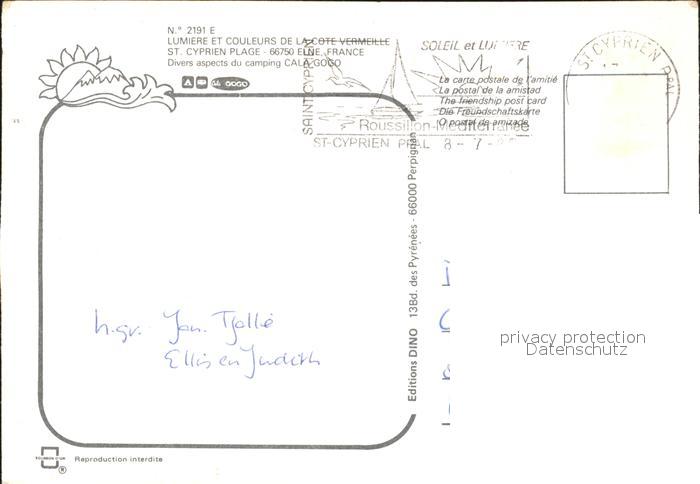 12243066 carte postale Saint-Cyprien Plage Camping Cala Gogo postalisch gelaufen Erhaltung siehe scans KatCode: 11170066266171