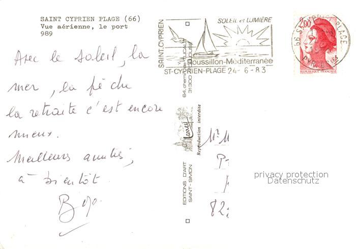 13223726 carte postale Saint-Cyprien Plage Fliegeraufnahme Port postalisch gelaufen Erhaltung siehe scans [LiesaD40] KatCode: 11170066266171