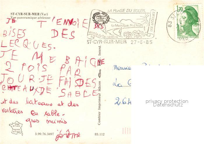 13561242 carte postale Saint-Cyr-sur-Mer Fliegeraufnahme Port postalisch gelaufen Erhaltung siehe scans [LiesaD40] KatCode: 11170083283112