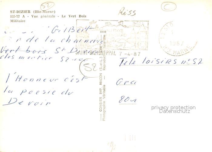 13155108 carte postale Saint-Dizier Haute-Marne Fliegeraufnahme Le Vert Bois Militaire postalisch gelaufen Erhaltung siehe scans [KathaD81] KatCode: 11170052352448