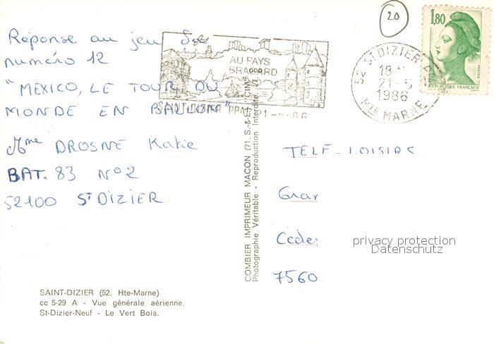 13273628 carte postale Saint-Dizier Haute-Marne Fliegeraufnahme St-Dizier-Neuf Vert Bois postalisch gelaufen Erhaltung siehe scans [NatalD47] KatCode: 11170052352448