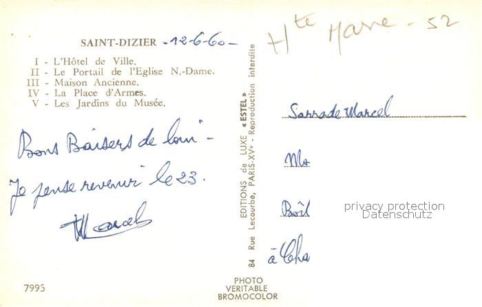 13579767 carte postale Saint-Dizier Haute-Marne Hotel de Ville Le Portail de l’Eglise ND Maison Ancienne La Place d’Armes Les Jardins du Musee postalisch gelaufen Erhaltung siehe scans [WerneD78] KatCode: 11170052352448