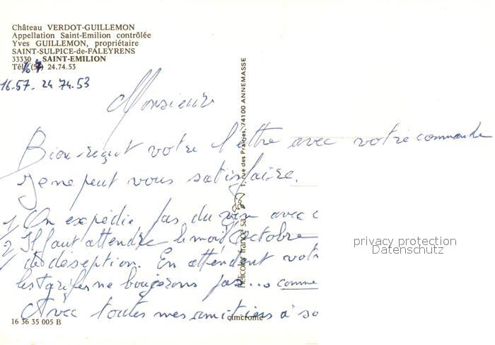 13560843 Saint-Emilion Fliegeraufnahme Chateau Verdot-Guillemon postalisch nicht gelaufen Erhaltung siehe scans [LiesaD40] KatCode: 11170033533394