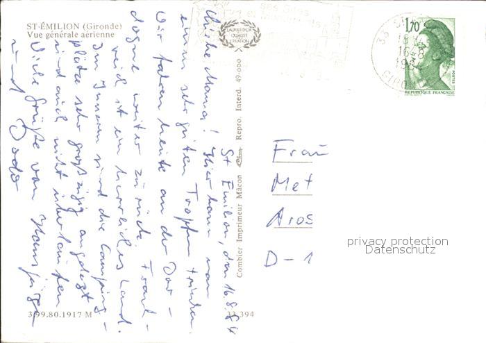 12235615 carte postale Saint-Emilion Vue generale aerienne postalisch gelaufen Erhaltung siehe scans KatCode: 11170033533394