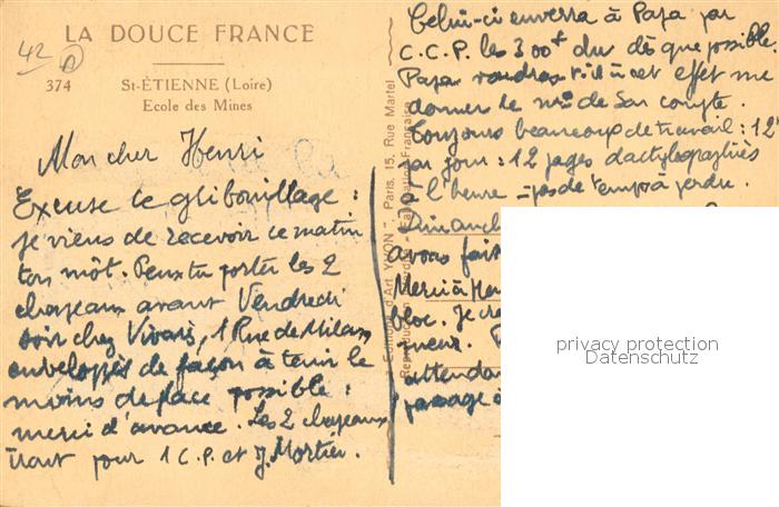 13621223 Saint-Etienne 42 Loire Ecole des Mines postalisch gelaufen Erhaltung siehe scans [WerneD78] carte postale Wern Katcode 11170042342218