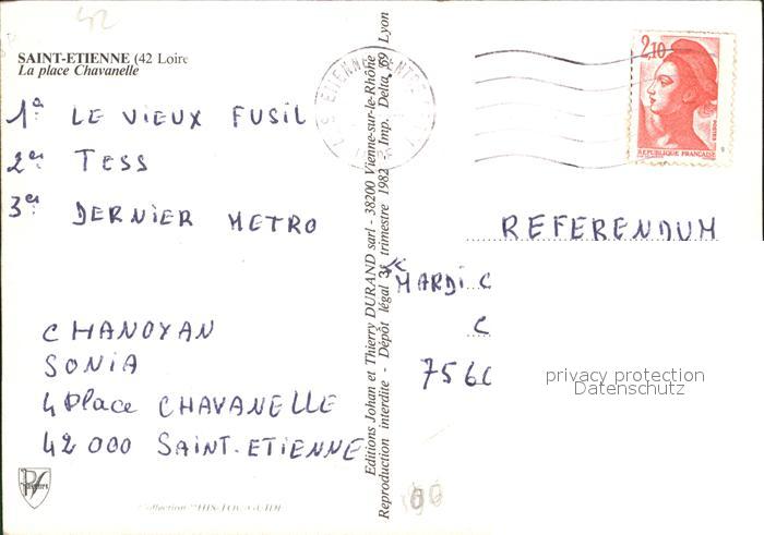 12157625 carte postale Saint-Etienne 42 Loire Place Chavanelle postalisch gelaufen Erhaltung siehe scans KatCode: 11170042342218