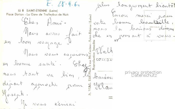 12843250 Saint-Etienne 42 Loire PlaceDorln La Gare Trolleybus Nacht postalisch nicht gelaufen Erhaltung siehe scans [KathaD81] KatCode: 11170042342218