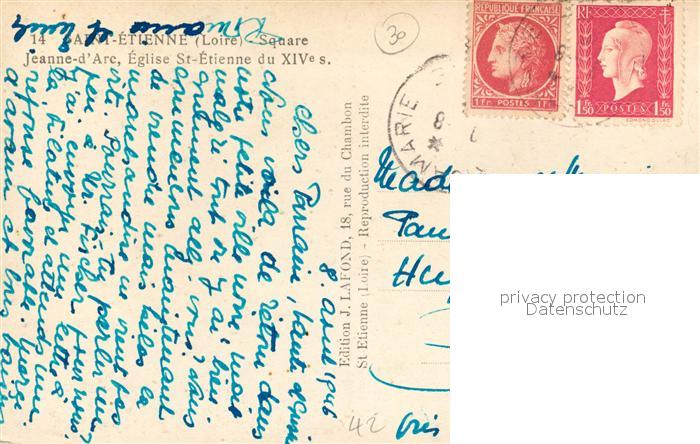13503774 carte postale Saint-Etienne 42 Loire Square Jeanne d Arc Eglise XIVe siècle Monument postalisch gelaufen Erhaltung siehe scans [FriedD77] KatCode: 11170042342218