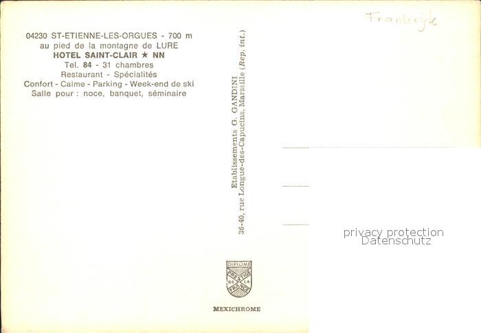 12271580 Saint-Etienne-les-Orgues Hotel Saint Clair postalisch nicht gelaufen Erhaltung siehe scans KatCode: 11170004404178