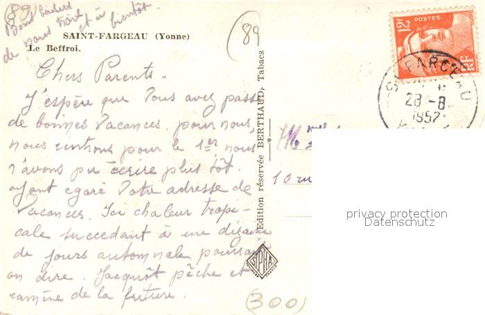 13537954 carte postale Saint-Fargeau Yonne Le Beffroi postalisch gelaufen Erhaltung siehe scans [WerneD78] KatCode: 11170089189344