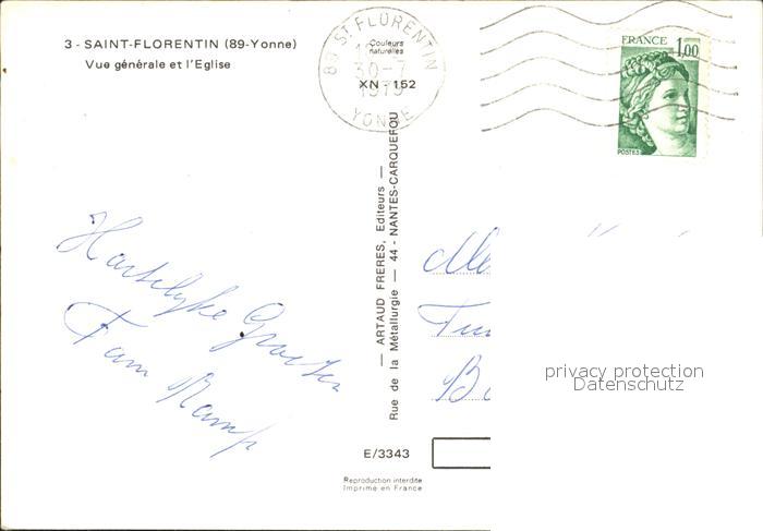 12462047 carte postale Saint-Florentin 89 Kirche postalisch gelaufen Erhaltung siehe scans KatCode: 11170089189345