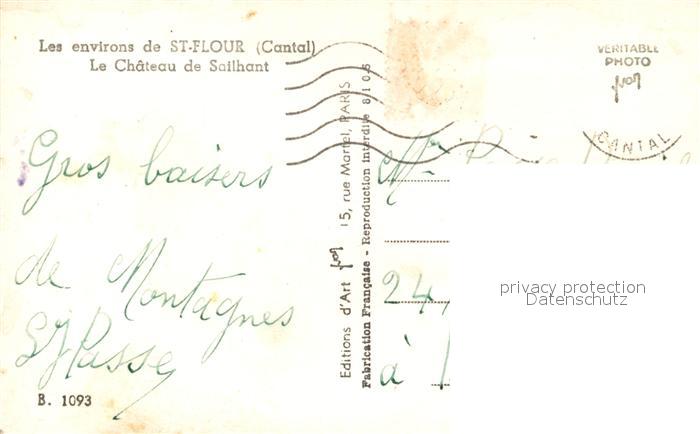 13547035 carte postale Saint-Flour Cantal Chateau de Sailhant Schloss postalisch gelaufen Erhaltung siehe scans [FriedD77] KatCode: 11170015315187
