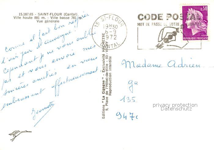 13590209 Saint-Flour Cantal Ville haute Ville basse Vue generale postalisch gelaufen Erhaltung siehe scans [WerneD78] carte postale Wern Katcode 11170015315187