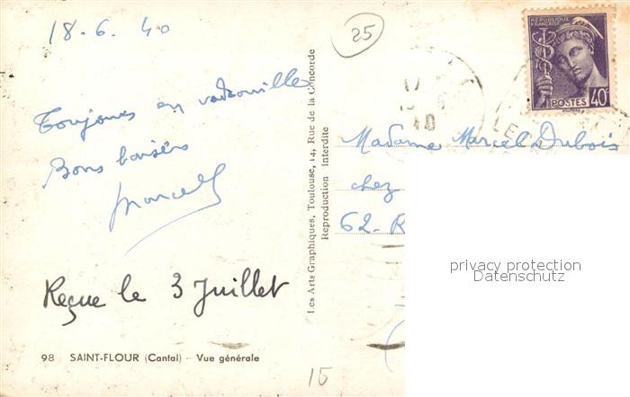 13493625 carte postale Saint-Flour Cantal Vue generale postalisch gelaufen Erhaltung siehe scans [WerneD78] KatCode: 11170015315187