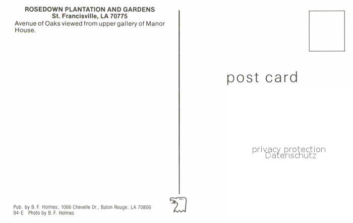 72705607 Saint Francisville Louisiana Rosedown Plantation and Gardens postalisch nicht gelaufen Erhaltung siehe scans [AndreD76] KatCode: 14140200000000