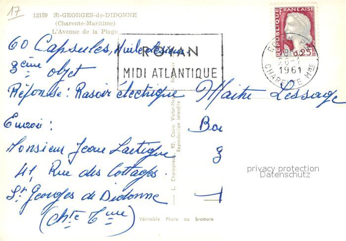 13593943 Saint-Georges-de-Didonne Avenue de la Plage postalisch gelaufen Erhaltung siehe scans [WerneD78] carte postale Wern Katcode 11170017217333
