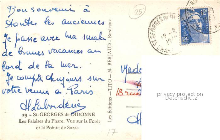 13493960 carte postale Saint-Georges-de-Didonne Les Falaises du Phare vue sur la Forêt et la Pointe de Suzac postalisch gelaufen Erhaltung siehe scans [FriedD77] KatCode: 11170017217333