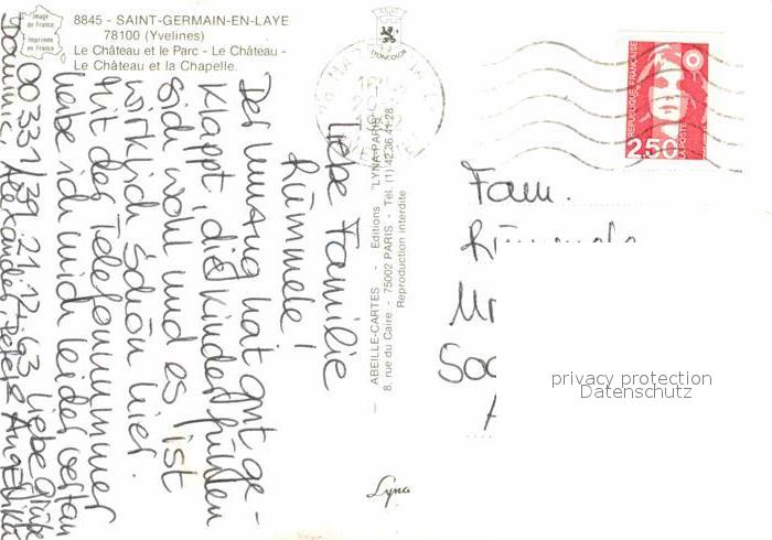 12826109 carte postale Saint-Germain-en-Laye Schloesser der Stadt postalisch gelaufen Erhaltung siehe scans [AndreD76] KatCode: 11170078378551
