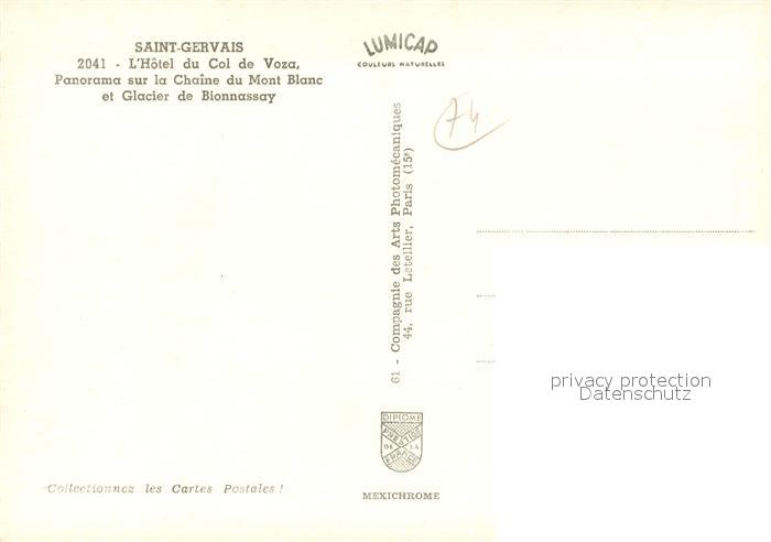 13165719 Saint-Gervais-les-Bains Hotel du Col de Voza La Chaine du Mont Blanc et Glacier de Bionnassay postalisch nicht gelaufen Erhaltung siehe scans [WerneD78] KatCode: 11170074274236