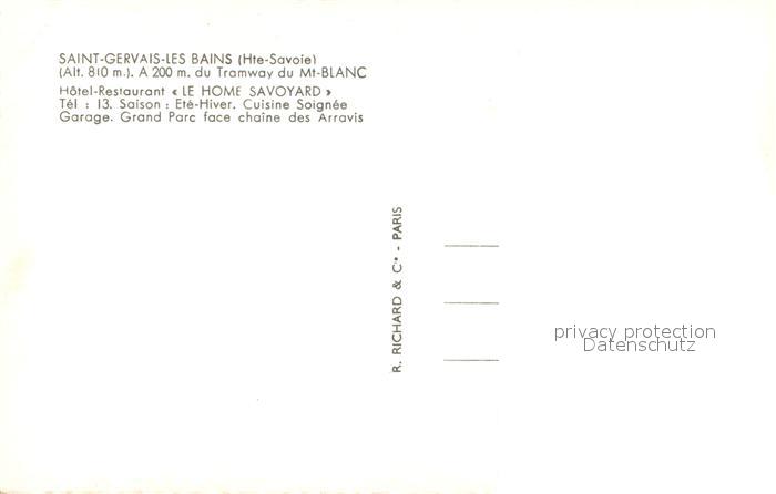 13681317 Saint-Gervais-les-Bains Hotel Restaurant Le Home Savoyard postalisch nicht gelaufen Erhaltung siehe scans [LiesaD40] Lies Katcode 11170074274236
