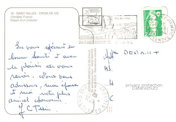carte postale Saint-Gilles-Croix-de-Vie Vendee Depart d’un chalutier postalisch gelaufen Erhaltung siehe scans [WerneD78]