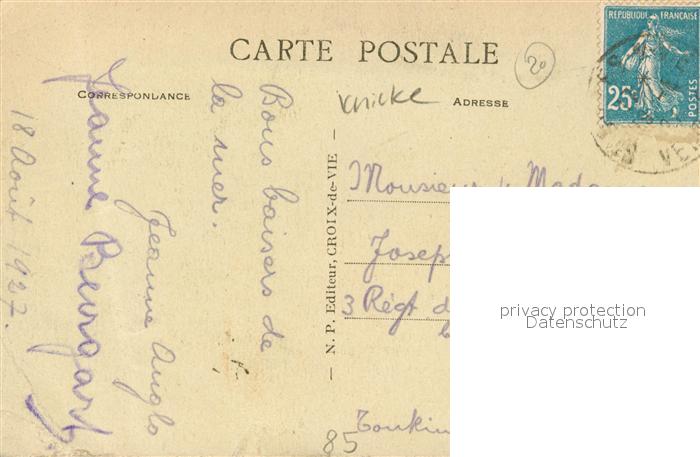 13486517 carte postale Saint-Gilles-Croix-de-Vie Vendee La Plage a maree haute a gauche la Villa Notre Dame postalisch gelaufen Erhaltung siehe scans [WerneD78] KatCode: 11170085385222