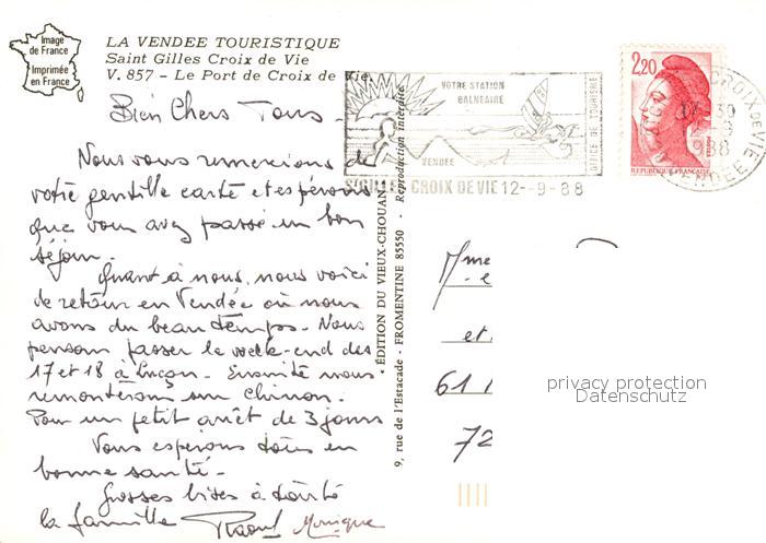 carte postale Saint-Gilles-Croix-de-Vie Vendee Le Port de Croix de Vie Bateaux de pêche postalisch gelaufen Erhaltung siehe scans [FriedD77]