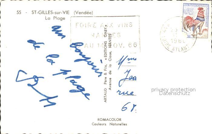 12306174 carte postale Saint-Gilles-Croix-de-Vie Vendee Plage postalisch gelaufen Erhaltung siehe scans KatCode: 11170085385222