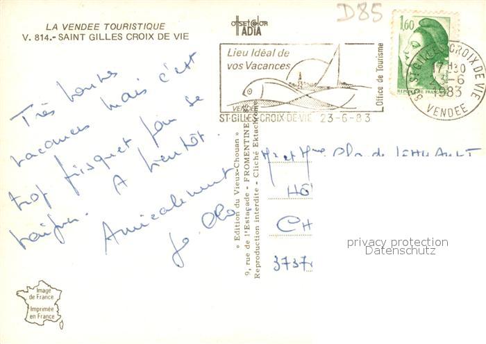 carte postale Saint-Gilles-Croix-de-Vie Vendee Port sardinier Vue partielle postalisch gelaufen Erhaltung siehe scans [WerneD78]