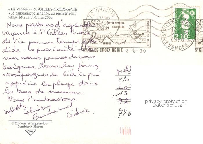 carte postale Saint-Gilles-Croix-de-Vie Vendee Village Merlin Saint Gilles 2000 Plage vue aérienne postalisch gelaufen Erhaltung siehe scans [FriedD77]