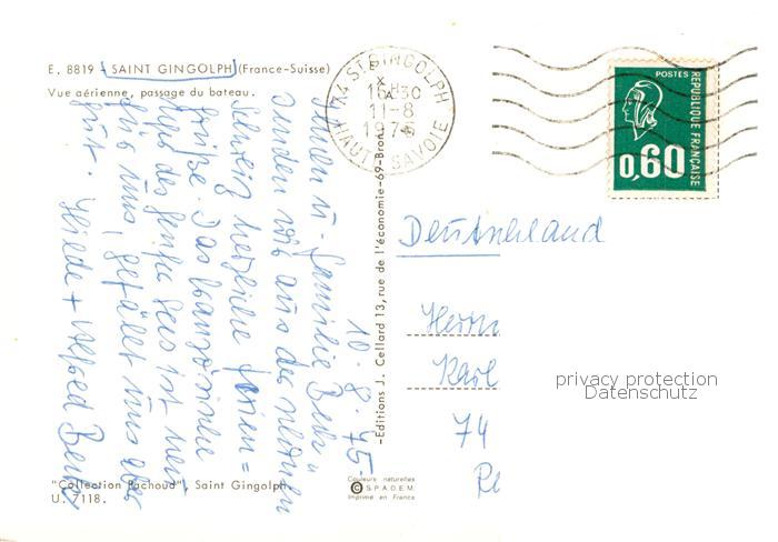 13788959 Saint-Gingolph Haute Savoie Passage du bateau vue aérienne postalisch gelaufen Erhaltung siehe scans [FriedD77] carte postale Frie Katcode 11170074474237