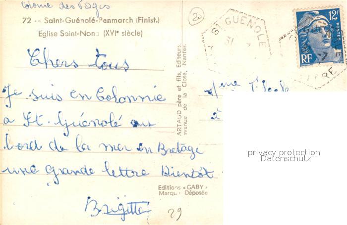 13498291 carte postale Saint-Guenole Eglise Saint Nonna postalisch gelaufen Erhaltung siehe scans [FriedD77] KatCode: 11170029429158